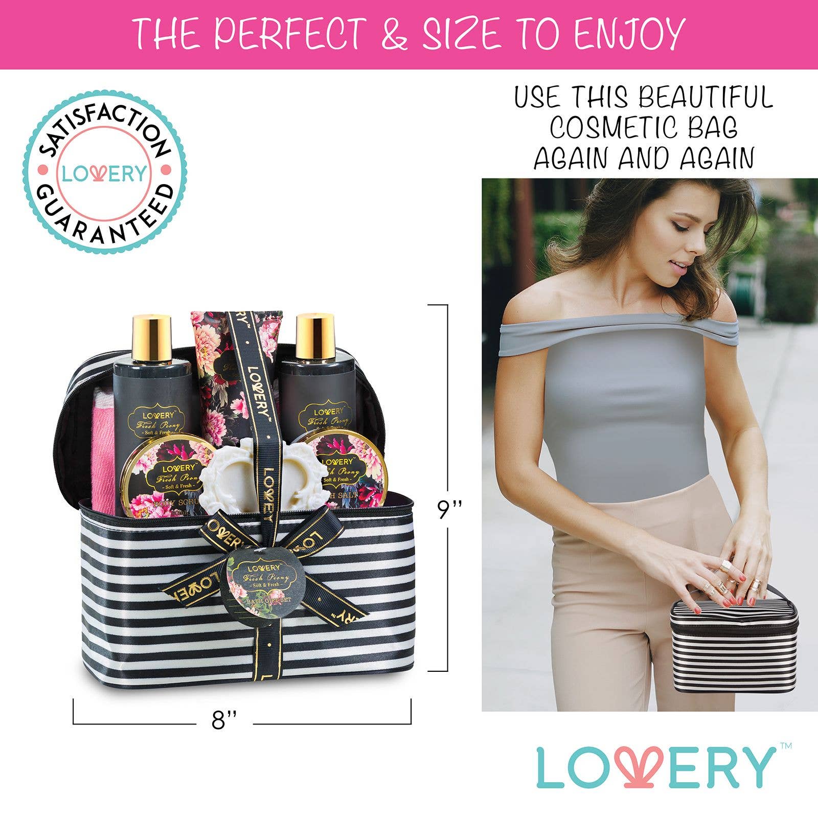 Contains a Shower Gel(200ml), Bubble Bath(200ml), Body Lotion(110ml), Bath Salt(50g), Body Scrub(50g), Heart Shaped Bath Soap, Exfoliating Loofah Back Scrubber and Carry Cosmetic Bag with Handle for travel and storage.